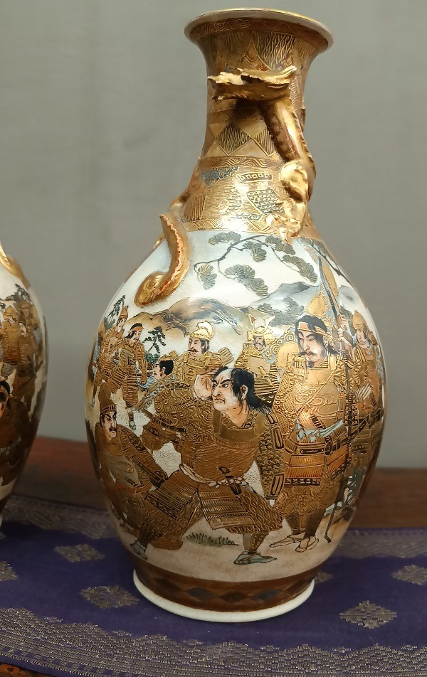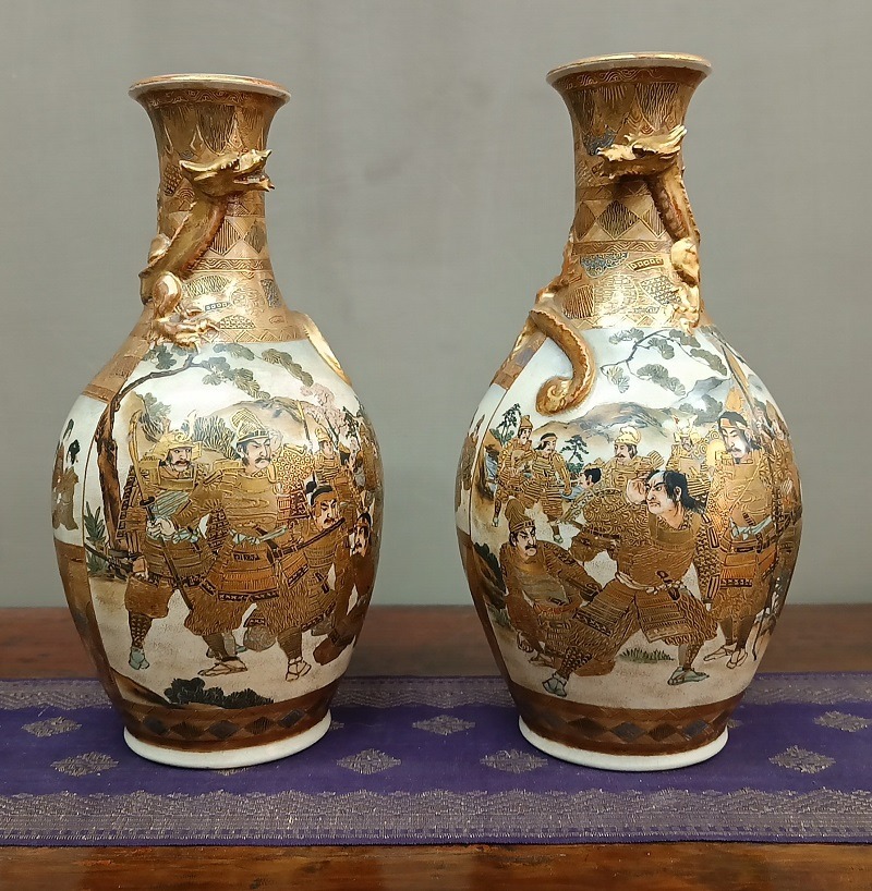 Coppia di vasi Satsuma in porcellana – Giappone, periodo Meiji (1868–1912)