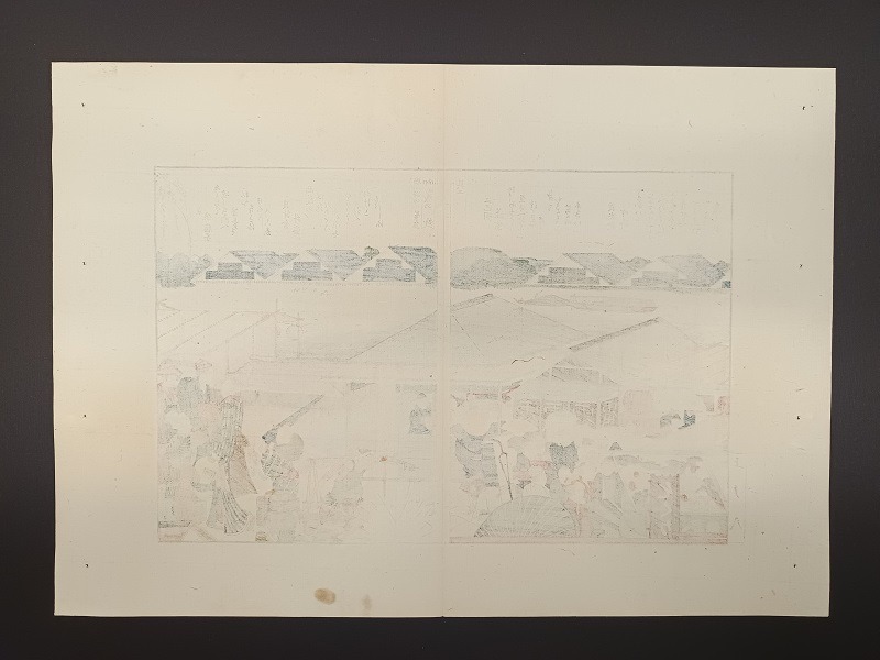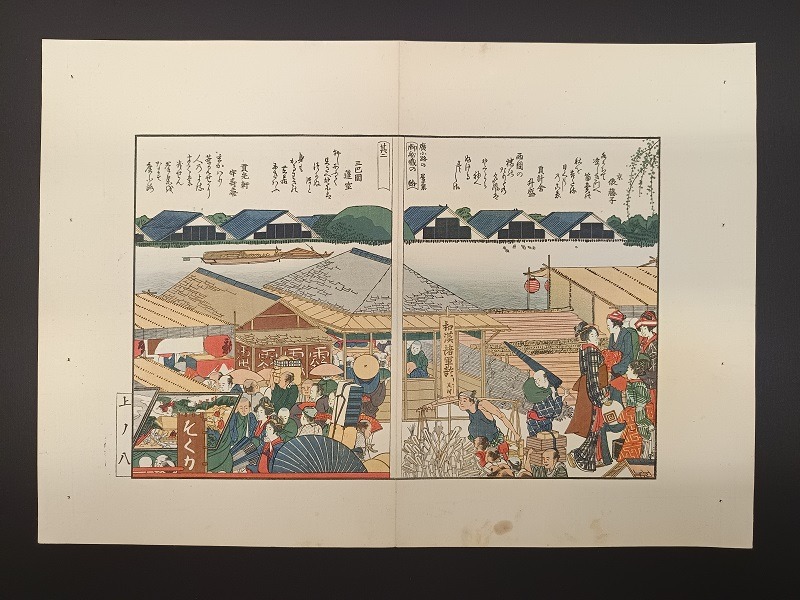 Una delle stampe dei libri illustrati a tre volumi: “Viste panoramiche su entrambe le rive del fiume Sumida”.